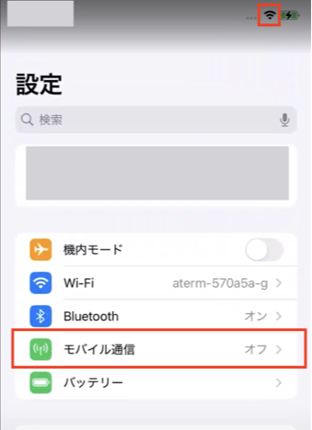 モバイルデータ通信が、利用するeSIMに選択されている状態にしましょう。
