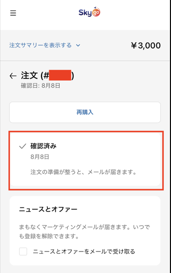 注文が確定しました。