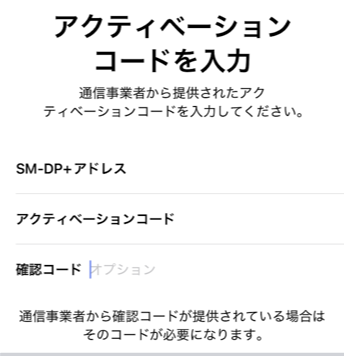 確認コードは、使い捨てのeSIMで必要になることはほぼありません。