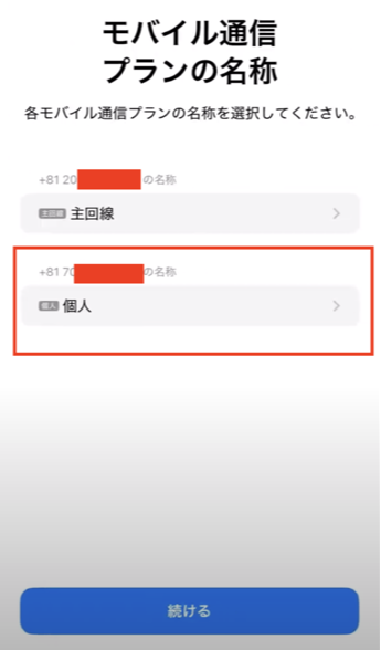 利用するeSIMを選択します。