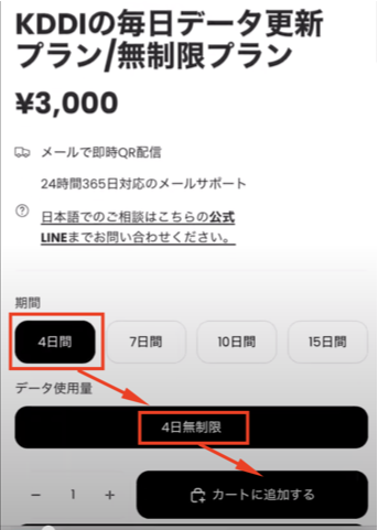 4日間無制限のプランを選択
