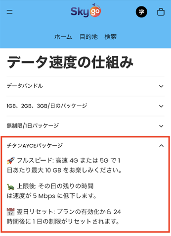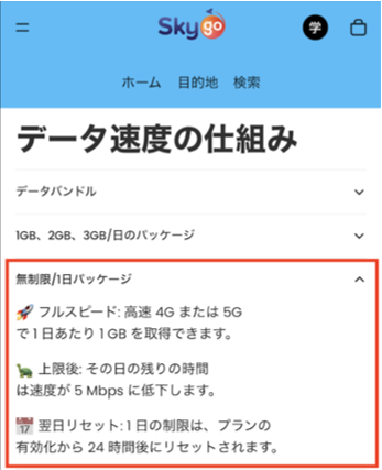 データ プランは、サポートされている国で接続したときに開始されます(1日の計算は、基本的にその国の日付が変わった時点でカウントされるプランがほとんどですのでご注意ください。)