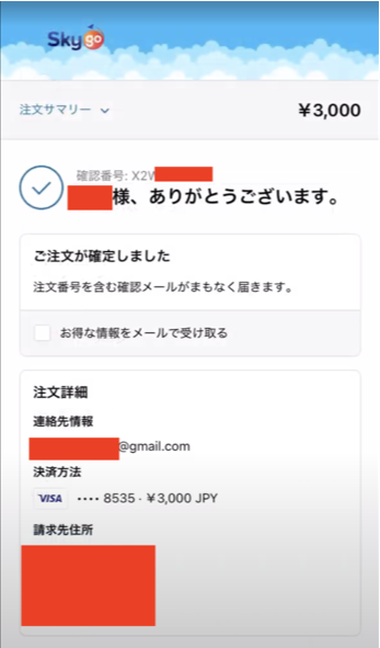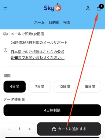 Skygo WiFiが作成してくれたページに入り、購入を進めていきます。