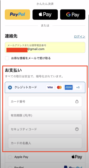 *この辺りの作業は、購入にApple PayやGoogle Payを利用すれば、これらに登録された情報が自動的に利用されるため、都度入力する必要がないので便利です。