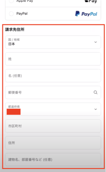 請求先住所(クレジットカードに登録されている住所)を入力します。