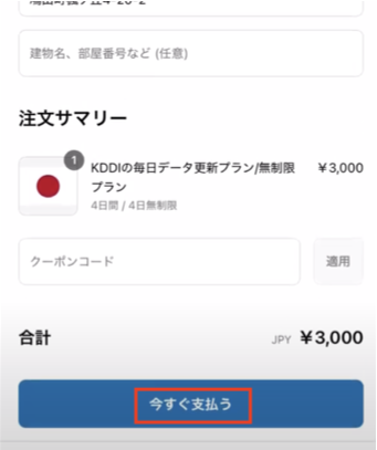 情報を入力したら、購入内容を確認し、『今すぐ支払う』に進みます。